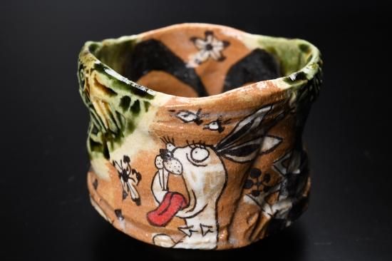 【陶展】深見文紀/鳴海漫画織部ぐい呑107 FUKAMI Fuminori / Narumimangaoribe guinomi 107