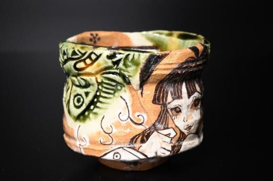 【陶展】深見文紀/鳴海漫画織部ぐい呑110 FUKAMI Fuminori / Narumimangaoribe guinomi 110